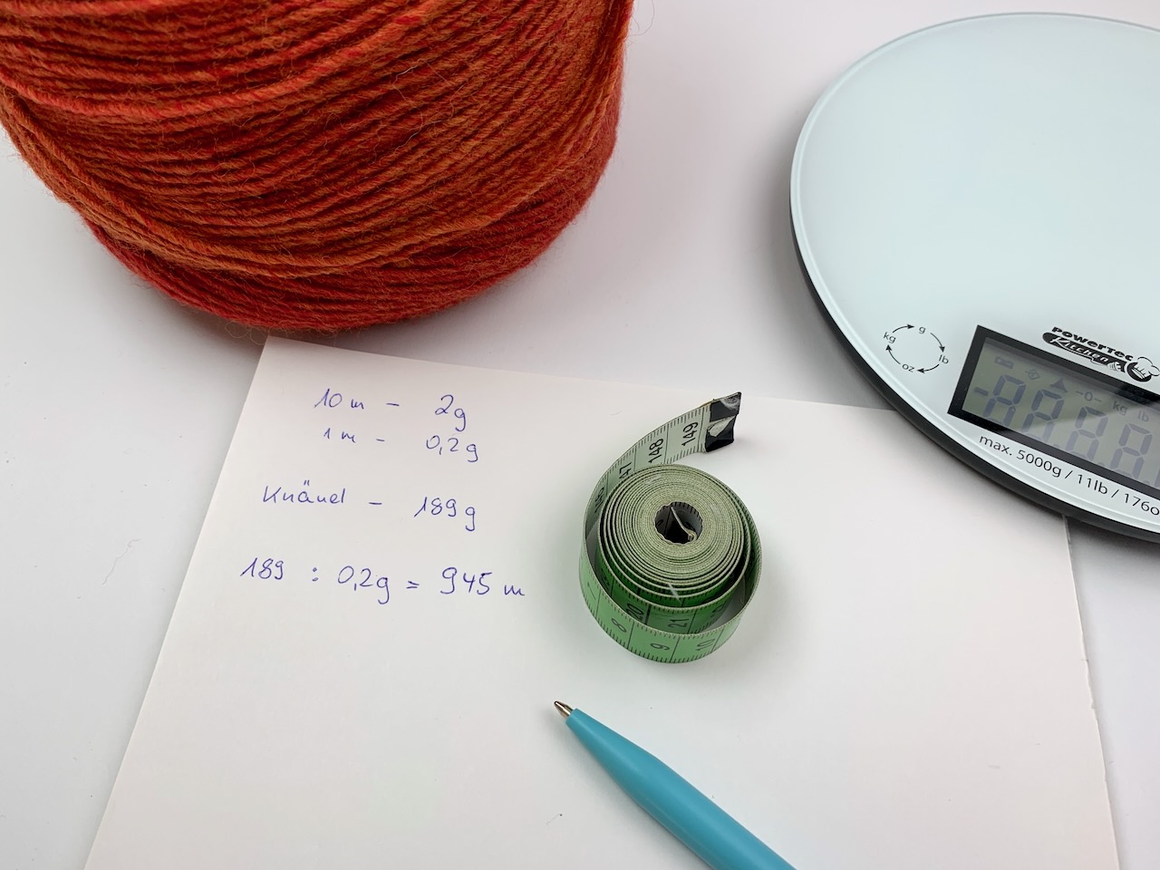 Wenn du Garn ohne Banderole hast, hilft dir eine einfache Rechnung, die Lauflänge abzuschätzen.