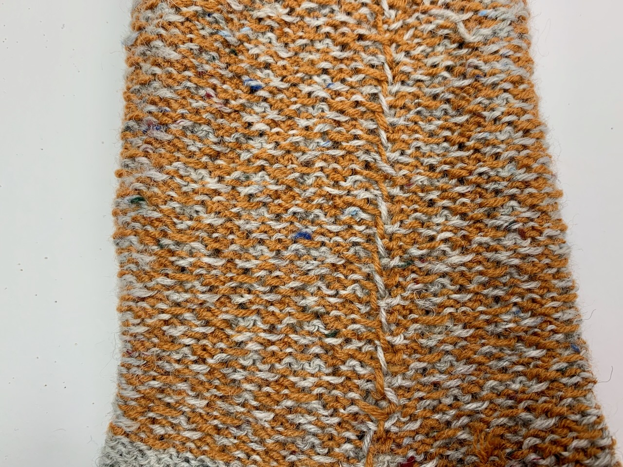 Es wurde gefragt, ob ich ein Foto zeigen kann, wie die Socke von innen an der Stelle des Farbwechsels ausschaut. Hier kommt es: