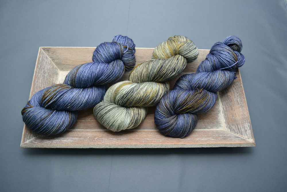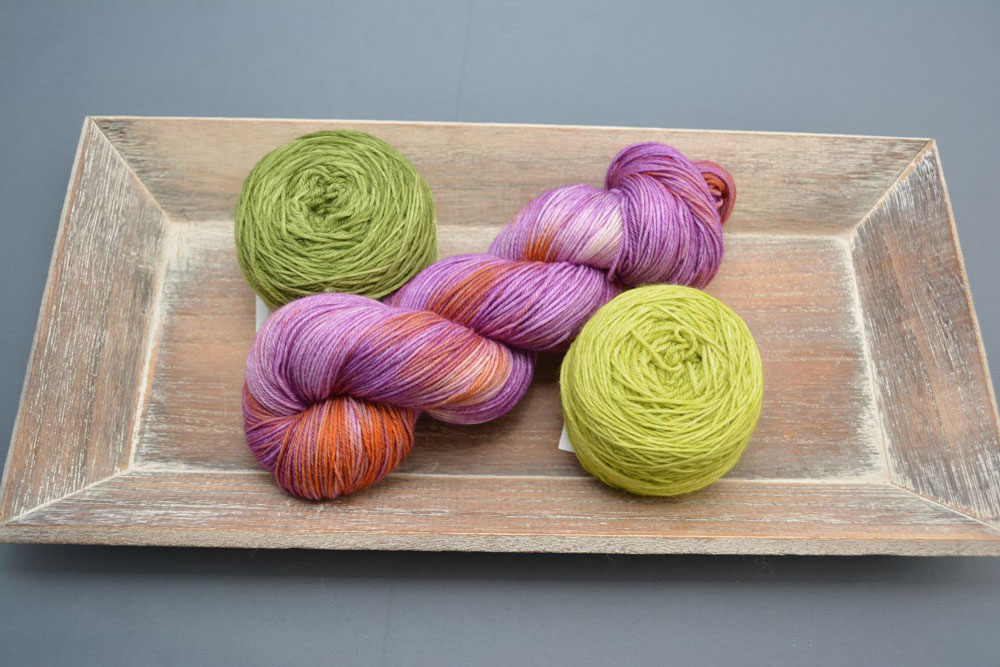 Meine Färbungen sind farbig, aber nicht zu bunt. Zurzeit kombiniere ich 2-3 Farben auf einem Strang und experimentiere so mit Farben und Garnqualitäten. Meine Kundinnen fordern mich zusätzlich heraus. Wunschfärbungen sind ein zusätzliches Highlight für mich beim Färben. Genau nach einer Vorlage zu arbeiten, das kann manches Mal sehr schwierig sein, macht aber auch den Reiz beim Färben aus. Meine Färbungen werden nie grell/neonfarbig ausfallen. Ich mag gute Farbkompositionen und das denke ich, spiegelt sich in meinen Färbungen wider.